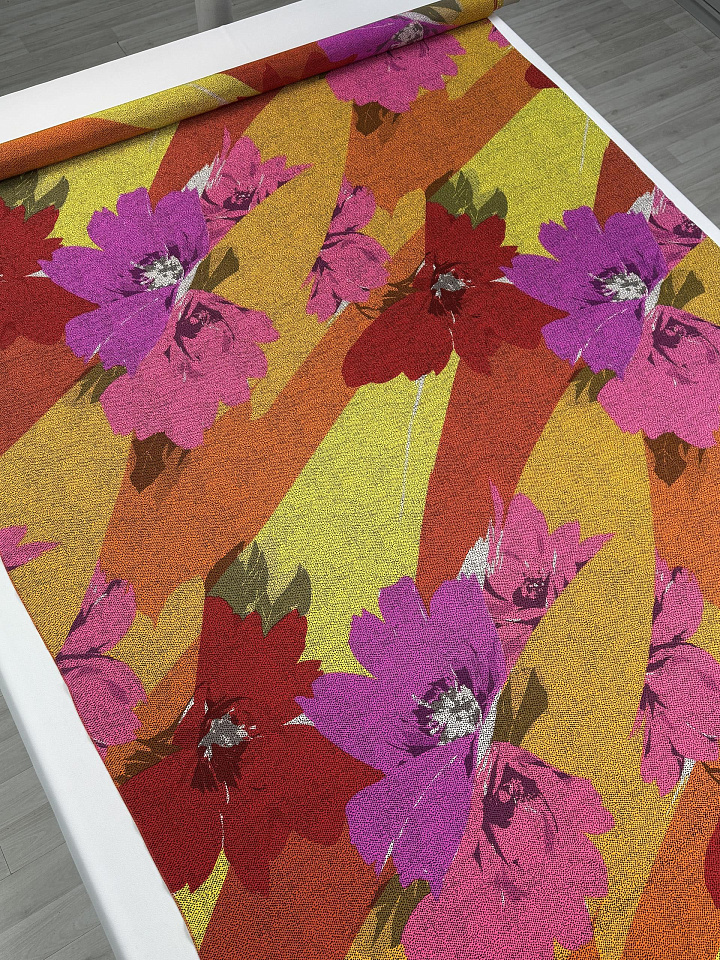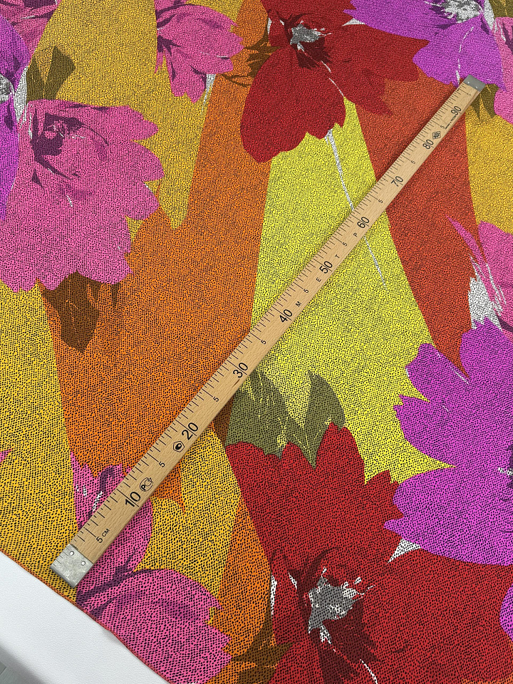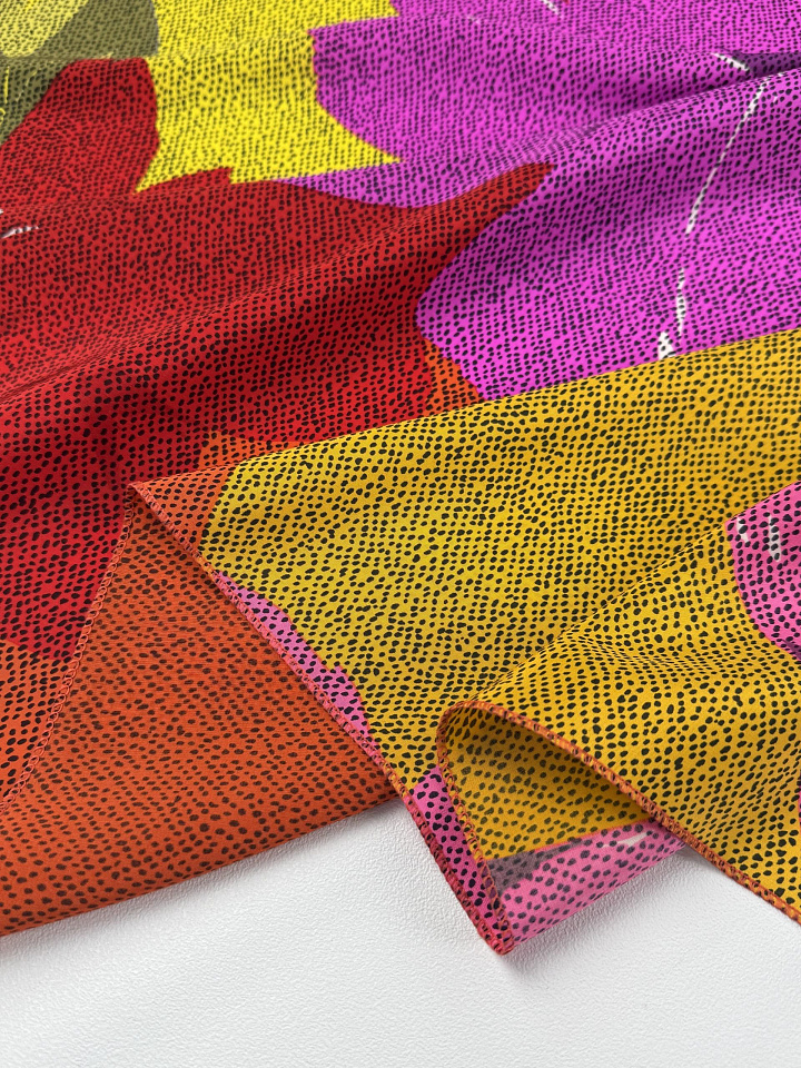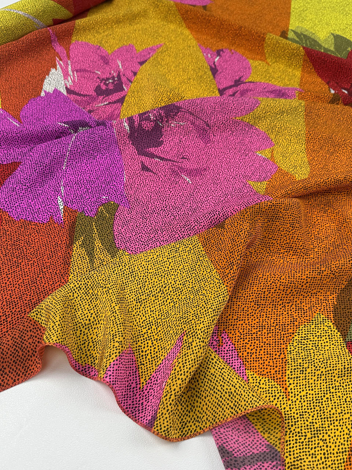 Крепдешин (н) яркий цветочный рисунок и черные вкрапления - цена 5 200 ₽ У нас самые доступные цены на в Москве, доставка по всей России - интернет магазин тканей Тессутидея. Артикул товара для заказа - 10-4834. Страна производства ткани – Италия. Ширина этого материала - 140. Состав - Шелк 100%. Наличие остатков на складе - 8.4 м