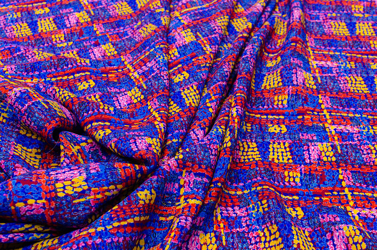 Крепдешин (н) яркий желто-красно-голубой орнамент Арт. 02-8421