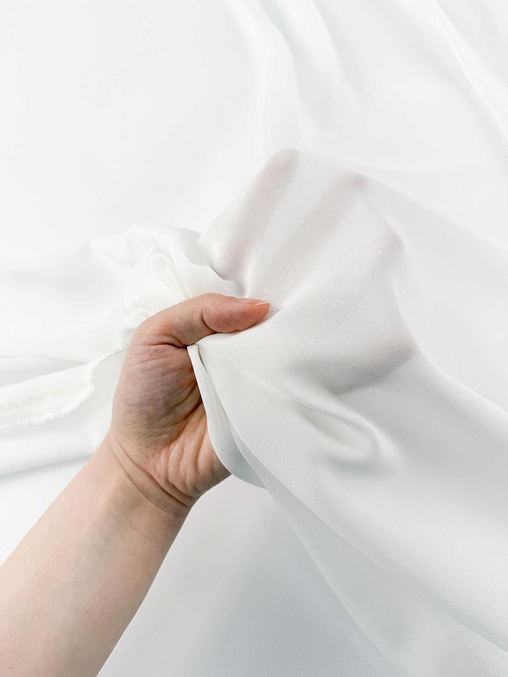Крепдешин (о) белый - цена 3 800 ₽ У нас самые доступные цены на Крепы шелковые в Москве, доставка по всей России - интернет магазин тканей Тессутидея. Артикул товара для заказа - 10-4390. Страна производства ткани – Италия. Ширина этого материала - 140. Состав - Шелк 100%. Наличие остатков на складе - 30.9 м