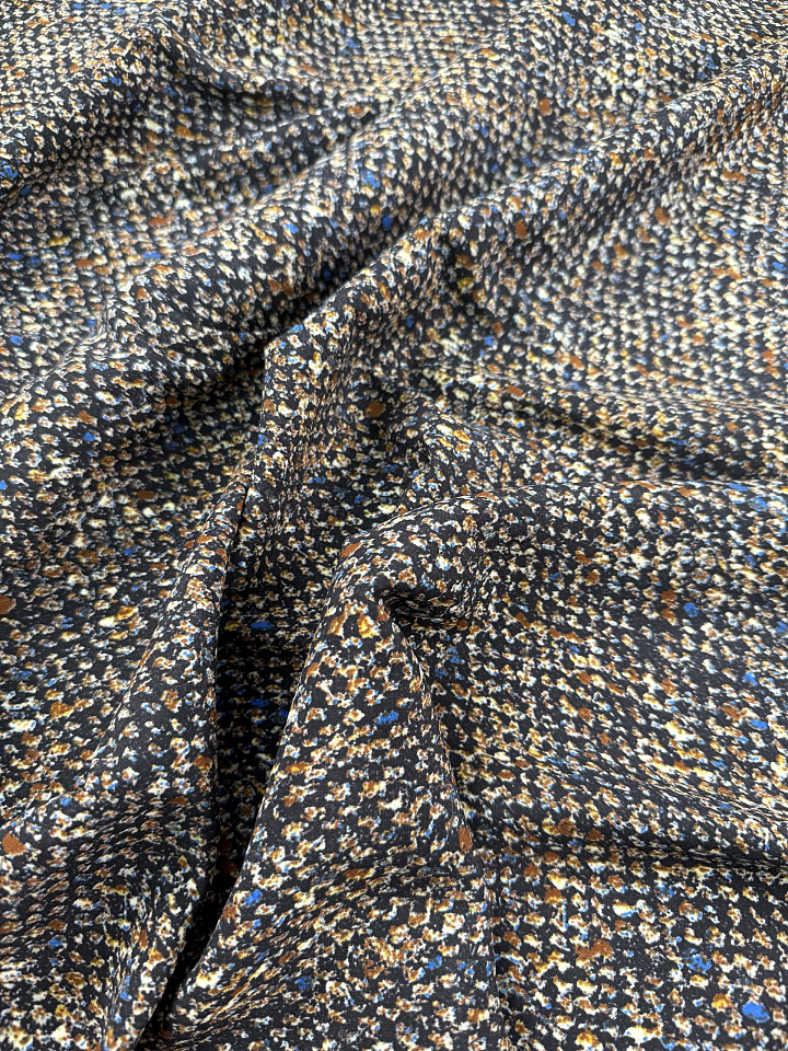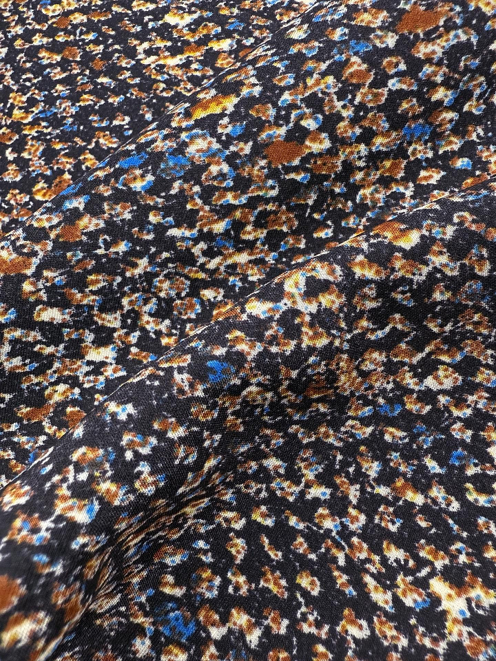 Крепдешин стрейч (н) мелкий коричнево-голубой рисунок на черном Арт. 10-4851