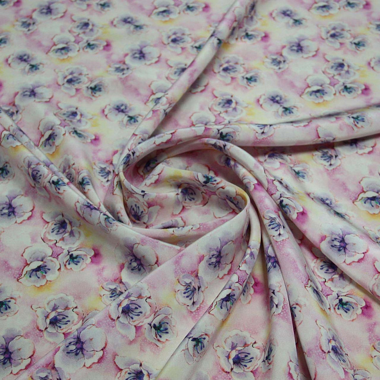 Крепдешин стрейч (н) розово-сиренево-желтый цветочный орнамент - цена 3 500 ₽ У нас самые доступные цены на в Москве, доставка по всей России - интернет магазин тканей Тессутидея. Артикул товара для заказа - 02-5739. Страна производства ткани – Италия. Ширина этого материала - 140. Состав - Шелк 98% эластан 2%. Наличие остатков на складе - 2.8 м