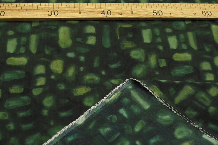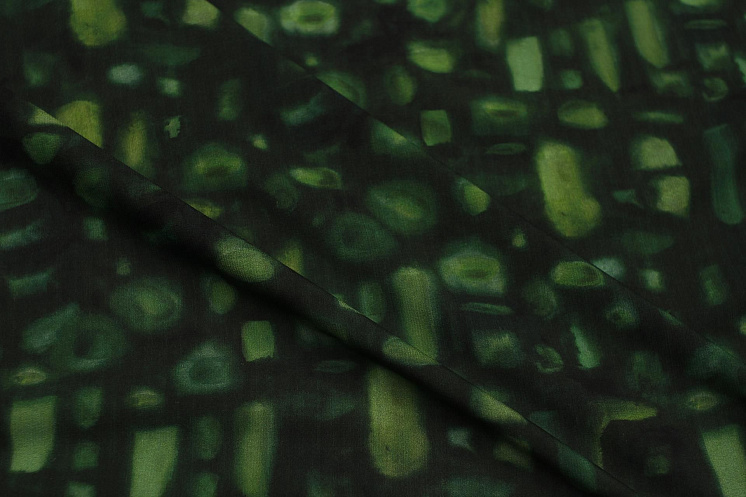 Крепдешин стрейч (н) салатово-зеленая абстракция - цена 5 800 ₽ У нас самые доступные цены на в Москве, доставка по всей России - интернет магазин тканей Тессутидея. Артикул товара для заказа - 10-4472. Страна производства ткани – Италия. Ширина этого материала - 140. Состав - Шелк 97% эластан 3%. Наличие остатков на складе - 4 м