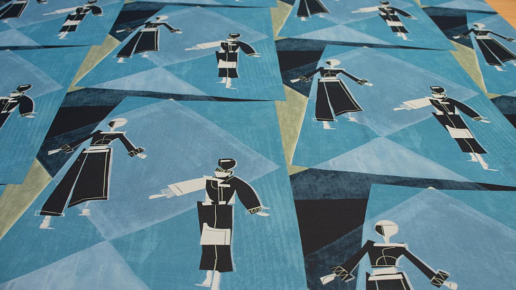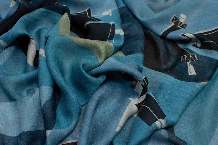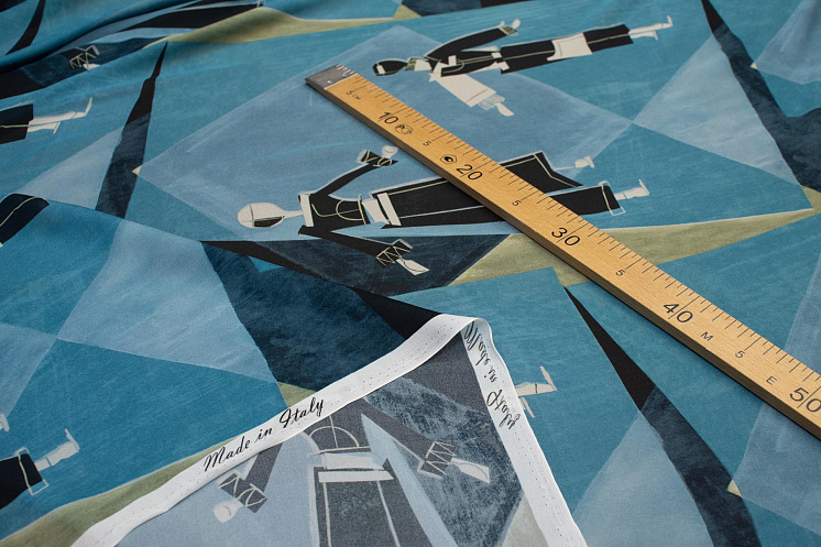 Крепжоржет (н) эскизы одежды на синей геометрии - цена 3 800 ₽ У нас самые доступные цены на Крепы шелковые в Москве, доставка по всей России - интернет магазин тканей Тессутидея. Артикул товара для заказа - 02-9021. Страна производства ткани – Италия. Ширина этого материала - 135. Состав - Шелк 100%. Наличие остатков на складе - 7.9 м