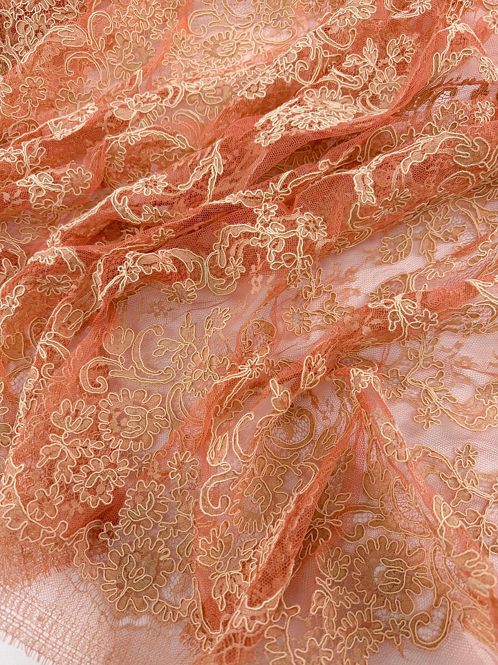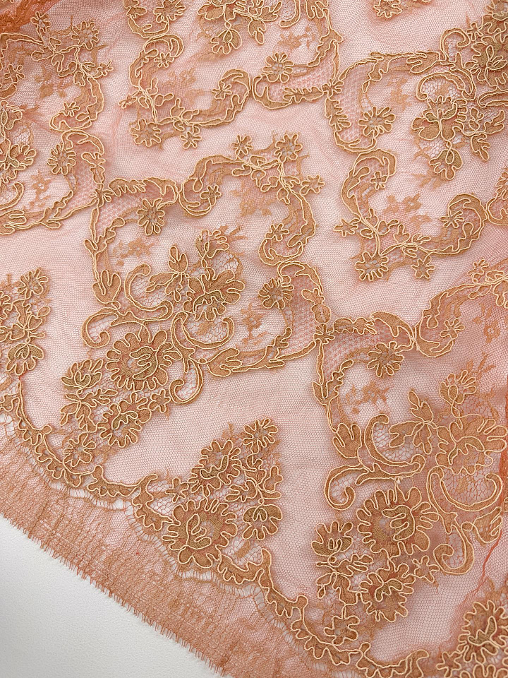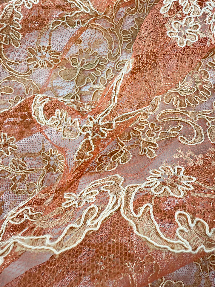 Кружевное полотно кордовое (н) бежево-терракотовое - цена 8 500 ₽ У нас самые доступные цены на в Москве, доставка по всей России - интернет магазин тканей Тессутидея. Артикул товара для заказа - 03-7534. Страна производства ткани – Италия. Ширина этого материала - 90. Состав - Хлопок 45% полиамид 55%. Наличие остатков на складе - 8.3 м