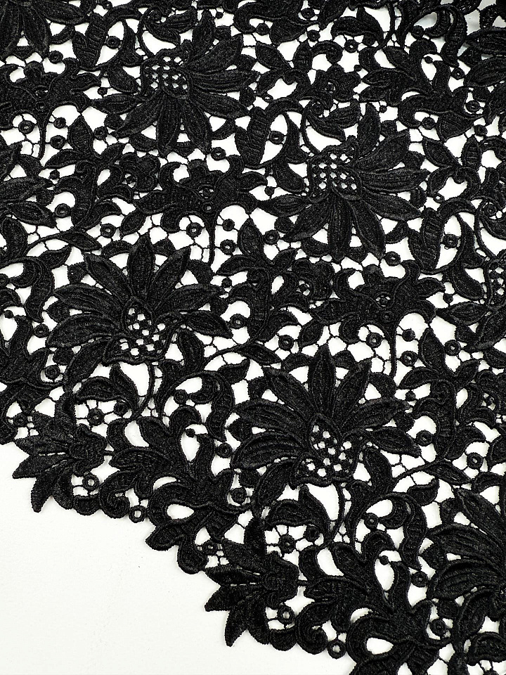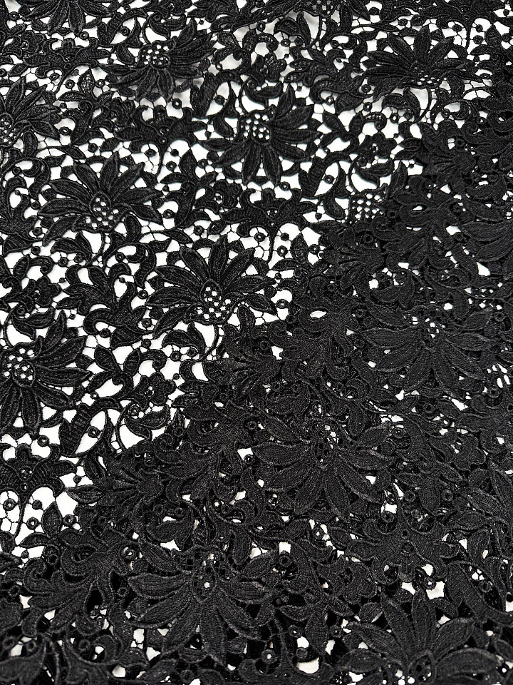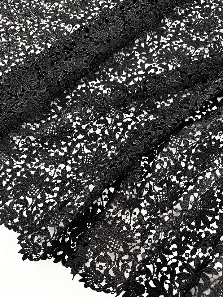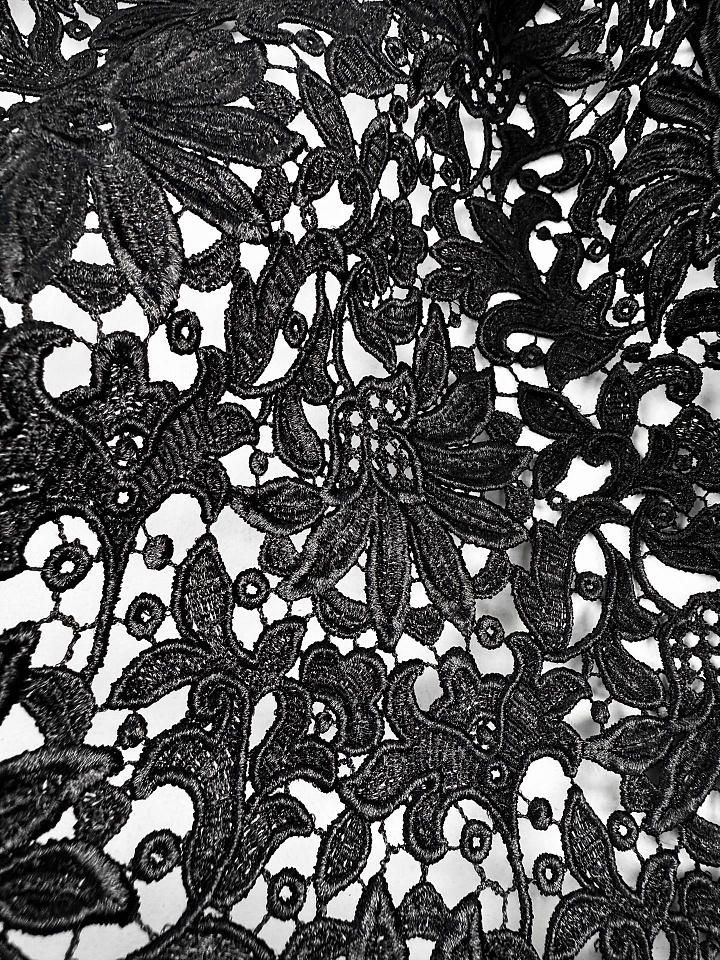 Кружевное полотно макраме (о) черное с накатом - цена 8 500 ₽ У нас самые доступные цены на в Москве, доставка по всей России - интернет магазин тканей Тессутидея. Артикул товара для заказа - 03-7528. Страна производства ткани – Италия. Ширина этого материала - 115. Состав - Полиамид 100%. Наличие остатков на складе - 5.3 м