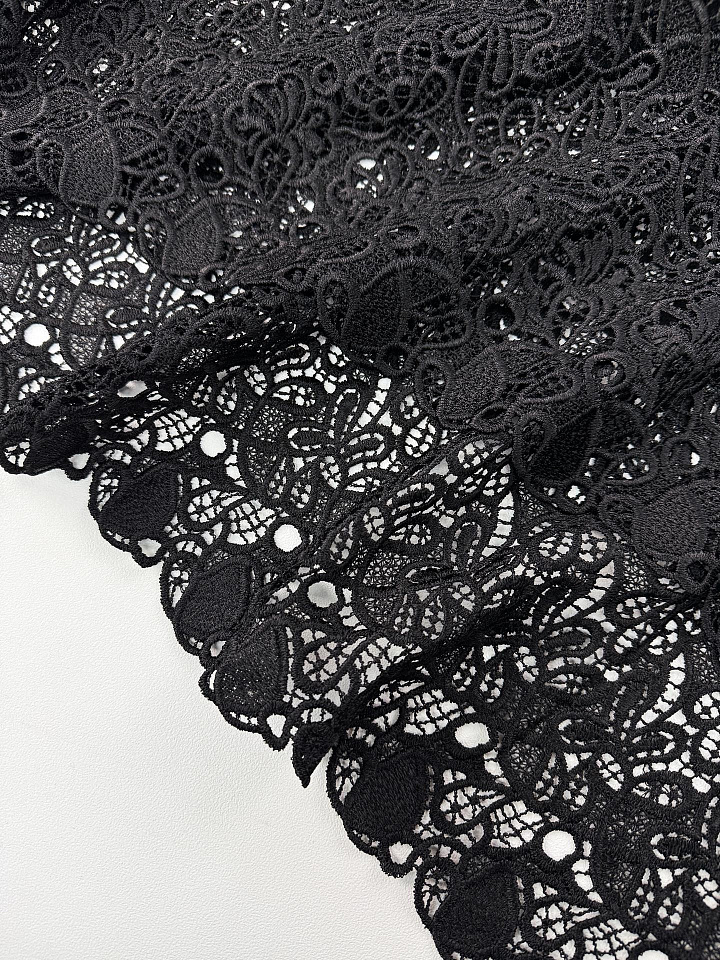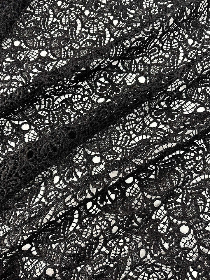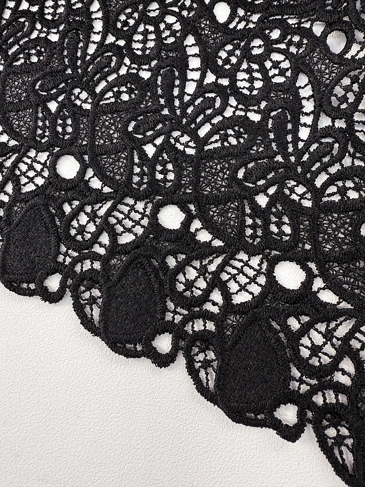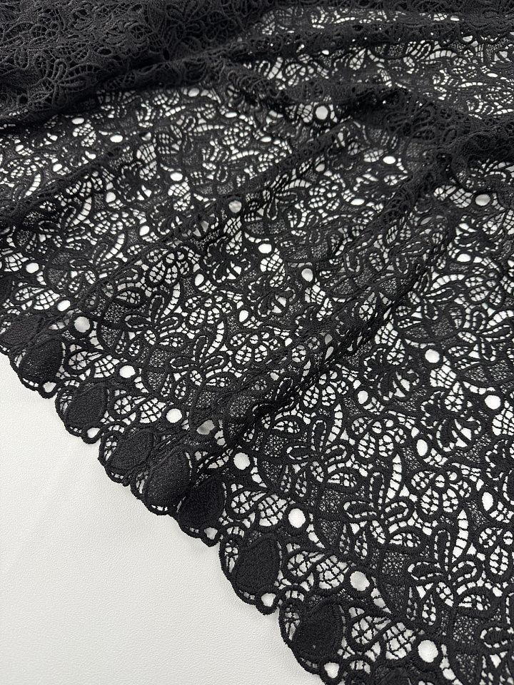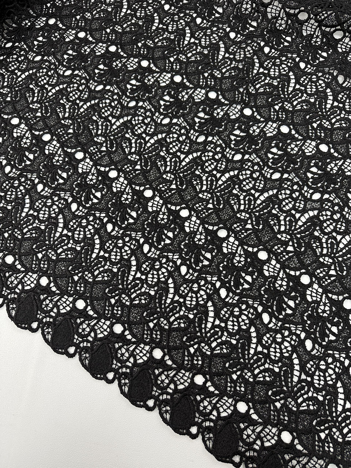 Кружевное полотно макраме (о) черное - цена 7 200 ₽ У нас самые доступные цены на в Москве, доставка по всей России - интернет магазин тканей Тессутидея. Артикул товара для заказа - 04-1847. Страна производства ткани – Италия. Ширина этого материала - 135. Состав - Вискоза 70% шелк 30%. Наличие остатков на складе - 6.2 м