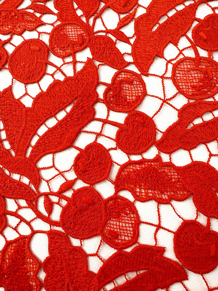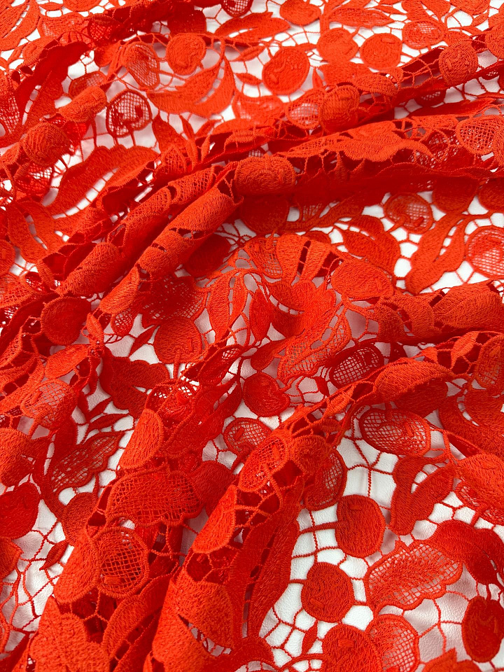 Кружевное полотно макраме (о) оранжевое - цена 5 800 ₽ У нас самые доступные цены на в Москве, доставка по всей России - интернет магазин тканей Тессутидея. Артикул товара для заказа - 03-7492. Страна производства ткани – Италия. Ширина этого материала - 120. Состав - Полиамид 100%. Наличие остатков на складе - 3.2 м