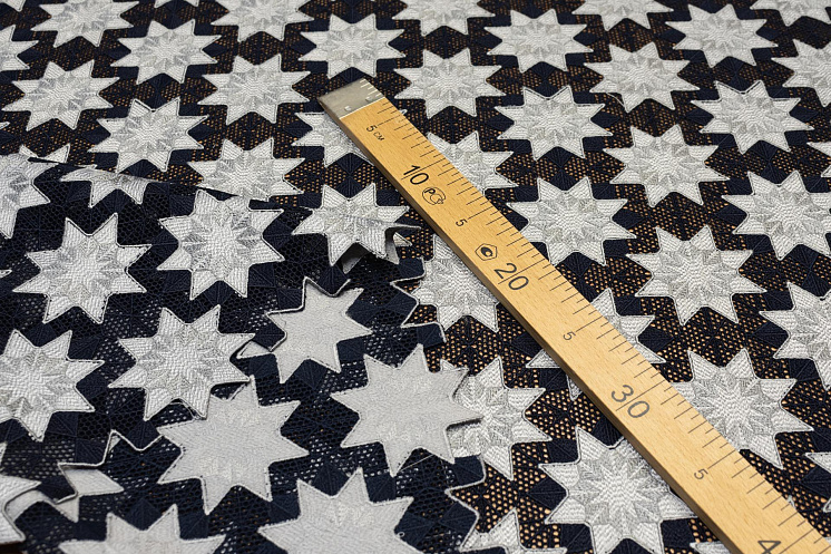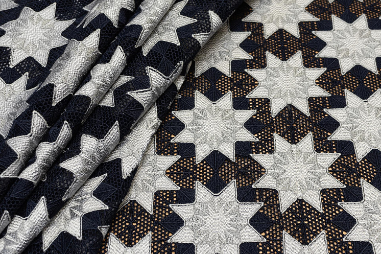 Кружевное полотно (н) серые звезды на темно-синем - цена 6 500 ₽ У нас самые доступные цены на Кружевные ткани в Москве, доставка по всей России - интернет магазин тканей Тессутидея. Артикул товара для заказа - 03-5957. Страна производства ткани – Италия. Ширина этого материала - 135. Состав - Вискоза 65% акрил 35%. Наличие остатков на складе - 4.2 м