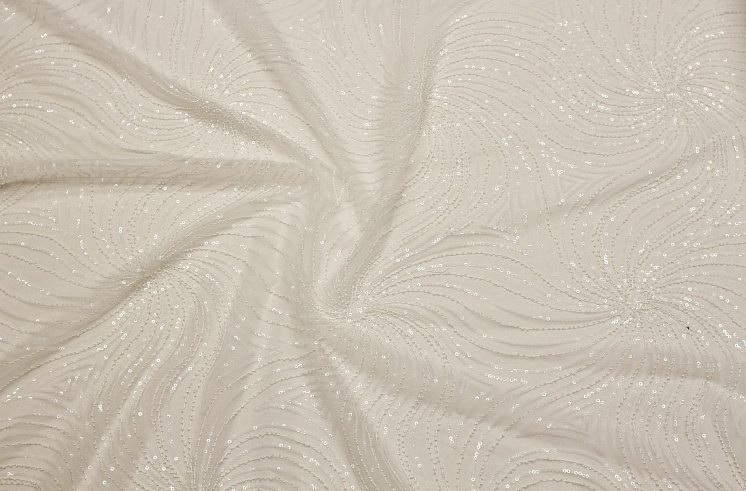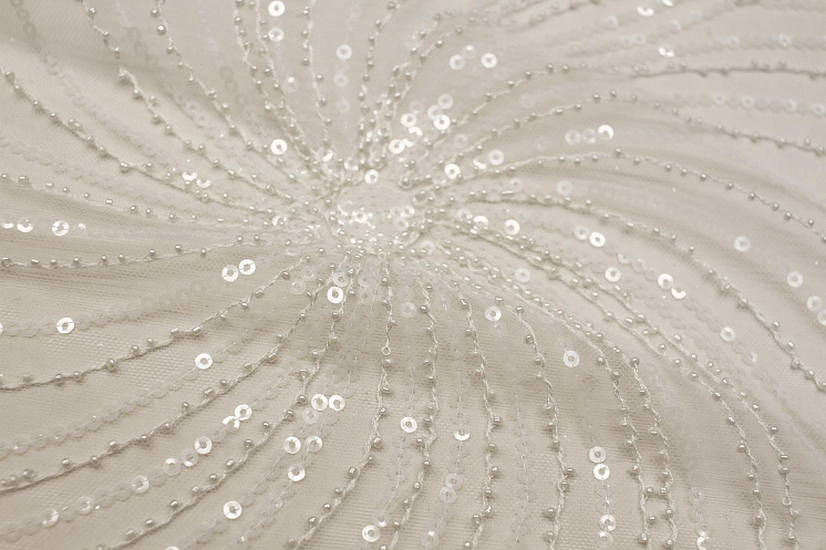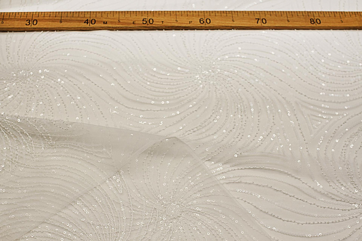 Кружевное полотно на сетке расшитое пайетками и стеклярусом (о) белое - цена 6 200 ₽ У нас самые доступные цены на Кружевные ткани в Москве, доставка по всей России - интернет магазин тканей Тессутидея. Артикул товара для заказа - 03-7196. Страна производства ткани – Италия. Ширина этого материала - 135. Состав - Полиамид 100%. Наличие остатков на складе - 10.7 м
