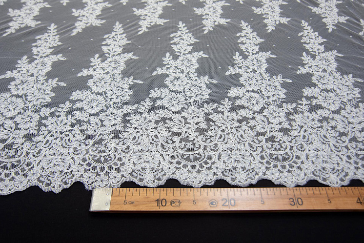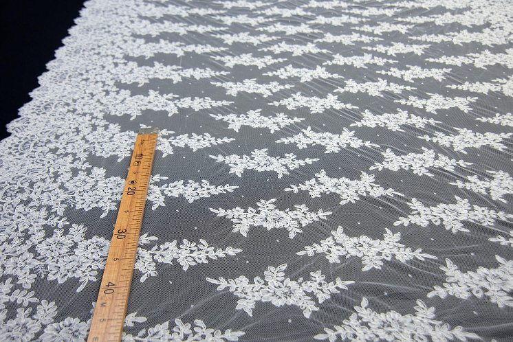 Кружевное полотно (о) айвори - цена 7 800 ₽ У нас самые доступные цены на Кружевные ткани в Москве, доставка по всей России - интернет магазин тканей Тессутидея. Артикул товара для заказа - 03-6439. Страна производства ткани – Италия. Ширина этого материала - 140. Состав - Вискоза 25% полиамид 75%. Наличие остатков на складе - 1.58 м