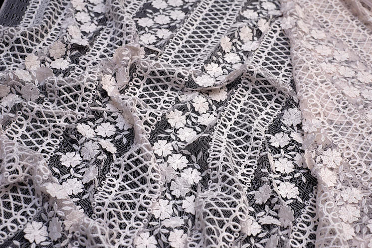 Эта изысканная ткань не теряет своей популярности на протяжении столетий. Наше восхитительное по красоте и замечательное по качеству кружево подходит для отделки и украшения любой одежды.Представленная ткань имеет безукоризненное европейское качество, выполнена в современном дизайне, практична и долговечна.