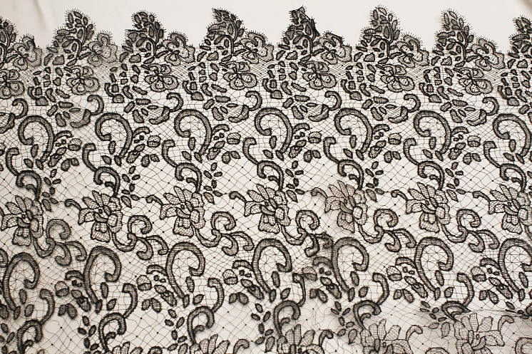 Кружевное полотно (о) черное - цена 7 700 ₽ У нас самые доступные цены на Кружевные ткани в Москве, доставка по всей России - интернет магазин тканей Тессутидея. Артикул товара для заказа - 03-6991. Страна производства ткани – Италия. Ширина этого материала - 120. Состав - Полиэстер 100%. Наличие остатков на складе - 23.05 м