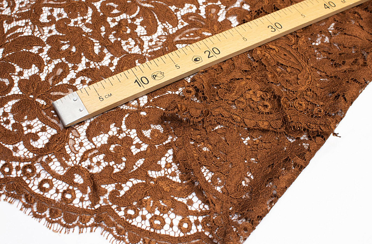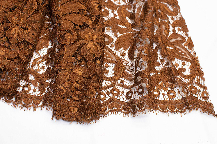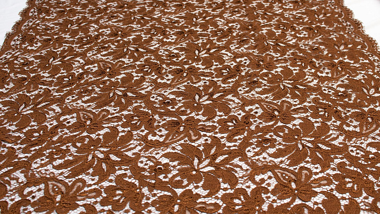 Кружевное полотно (о) коричневое - цена 5 200 ₽ У нас самые доступные цены на Кружевные ткани в Москве, доставка по всей России - интернет магазин тканей Тессутидея. Артикул товара для заказа - 03-6081. Страна производства ткани – Италия. Ширина этого материала - 95. Состав - Вискоза 60% полиамид 40%. Наличие остатков на складе - 2.4 м
