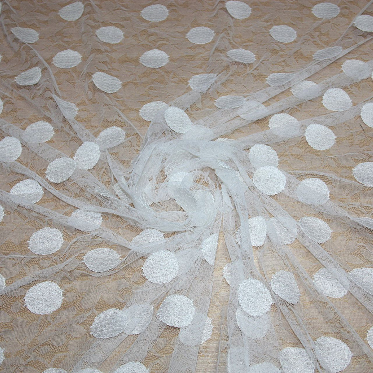 Кружевное полотно (о) крупный белый горох на кружеве ш-170см Арт. 03-2845