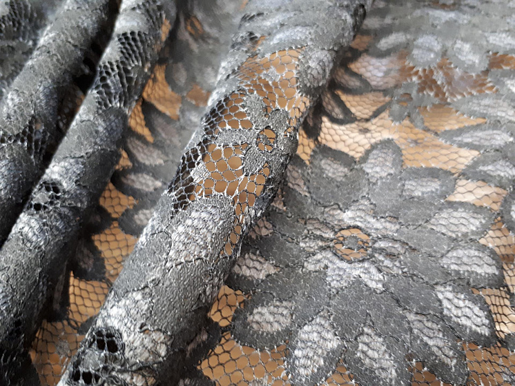Кружевное полотно (о) темно-серое - цена 3 300 ₽ У нас самые доступные цены на Кружевные ткани в Москве, доставка по всей России - интернет магазин тканей Тессутидея. Артикул товара для заказа - 03-5498. Страна производства ткани – Италия. Ширина этого материала - 140. Состав - Вискоза 45% полиамид 55%. Наличие остатков на складе - 5.2 м
