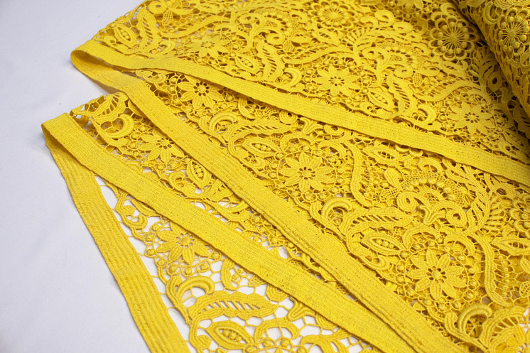 Кружевное полотно (о) темно-желтое в стиле Valentino - цена 9 500 ₽ У нас самые доступные цены на Кружевные ткани в Москве, доставка по всей России - интернет магазин тканей Тессутидея. Артикул товара для заказа - 01-5463. Страна производства ткани – Италия. Ширина этого материала - 110. Состав - Хлопок 100%. Наличие остатков на складе - 5.12 м
