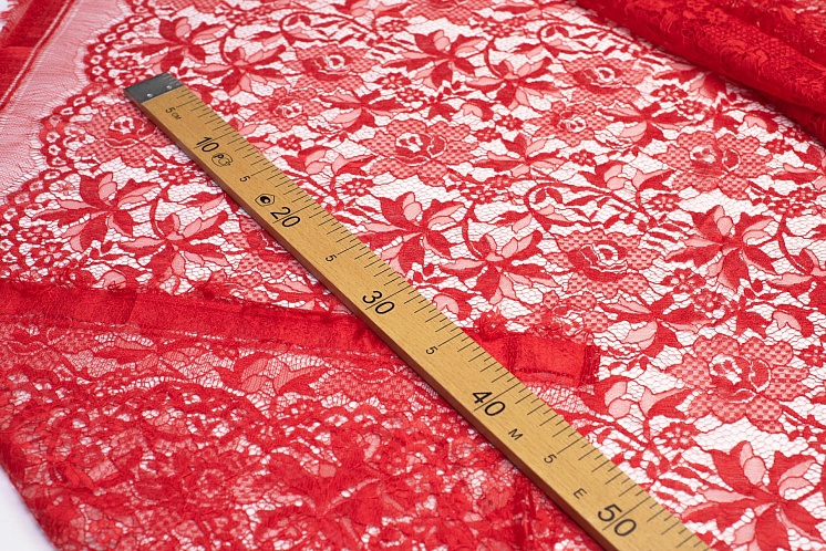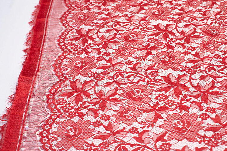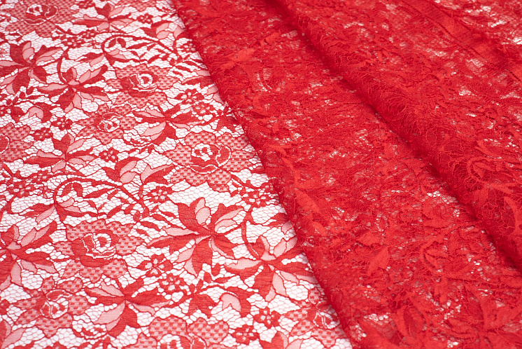 Кружевное полотно (о) ярко-красное - цена 6 200 ₽ У нас самые доступные цены на в Москве, доставка по всей России - интернет магазин тканей Тессутидея. Артикул товара для заказа - 03-6122. Страна производства ткани – Италия. Ширина этого материала - 145. Состав - Вискоза 40% полиамид 60%. Наличие остатков на складе - 5.5 м