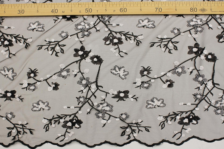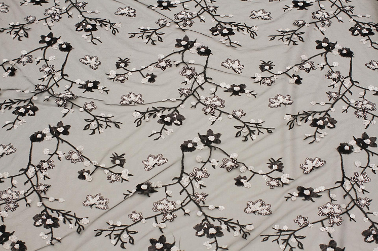 Кружевное полотно расшитое пайетками (н) черно-белое Арт. 03-6937