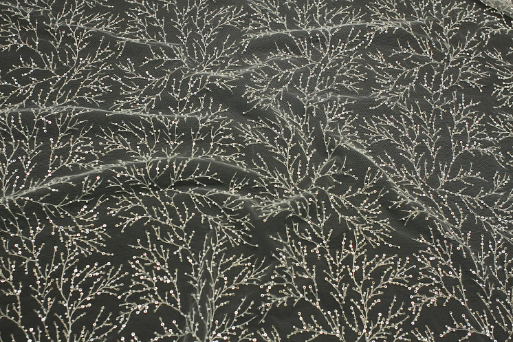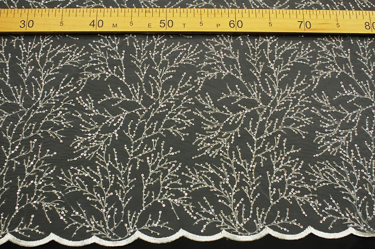 Кружевное полотно расшитое стеклярусом и пайетками (о) айвори Арт. 03-6938