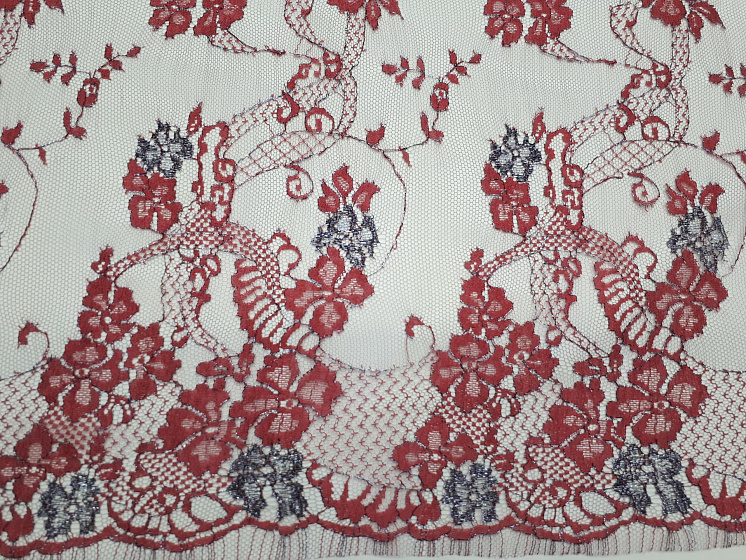 Кружевное полотно с люрексом (н) сине-красное на серой сетке Solstiss Арт. 03-5384