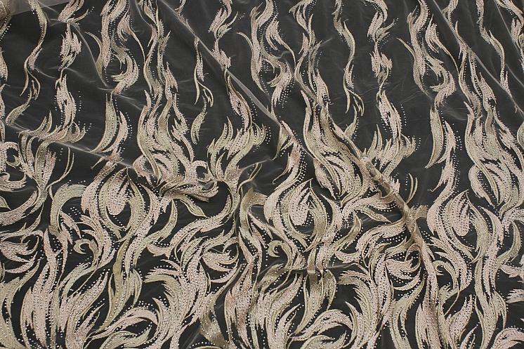 Кружевное полотно с люрексом расшитое стразами (н) розово-бежевое Арт. 03-6948