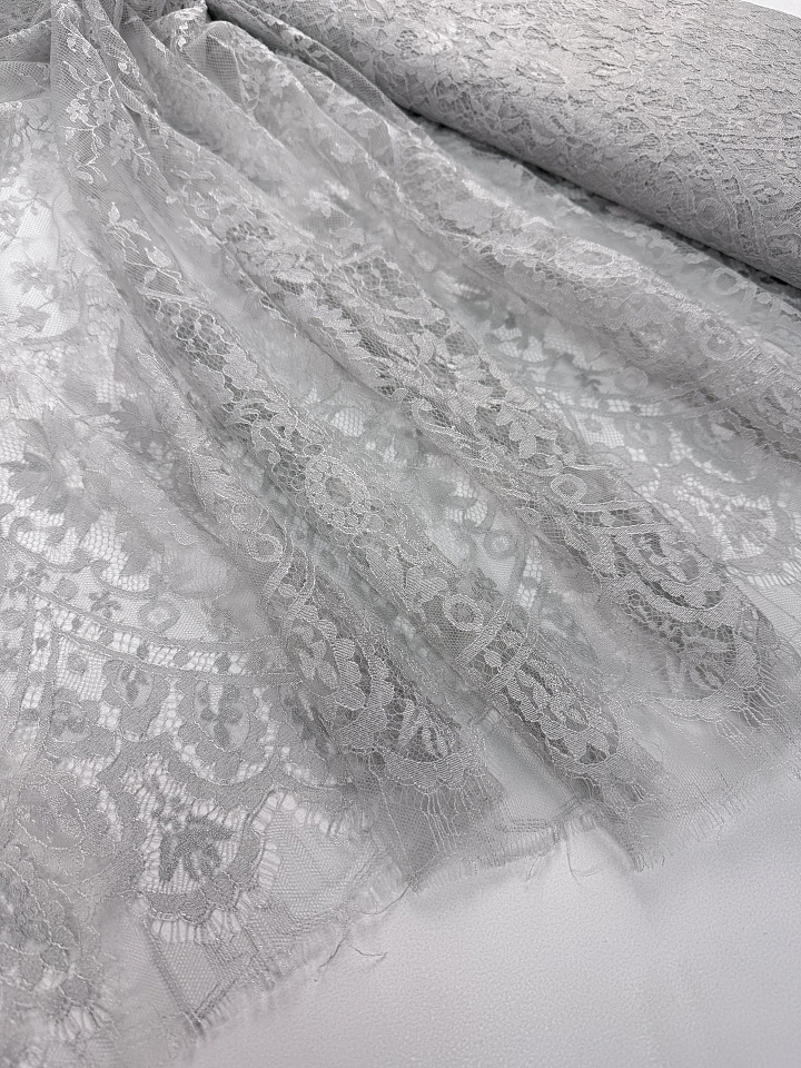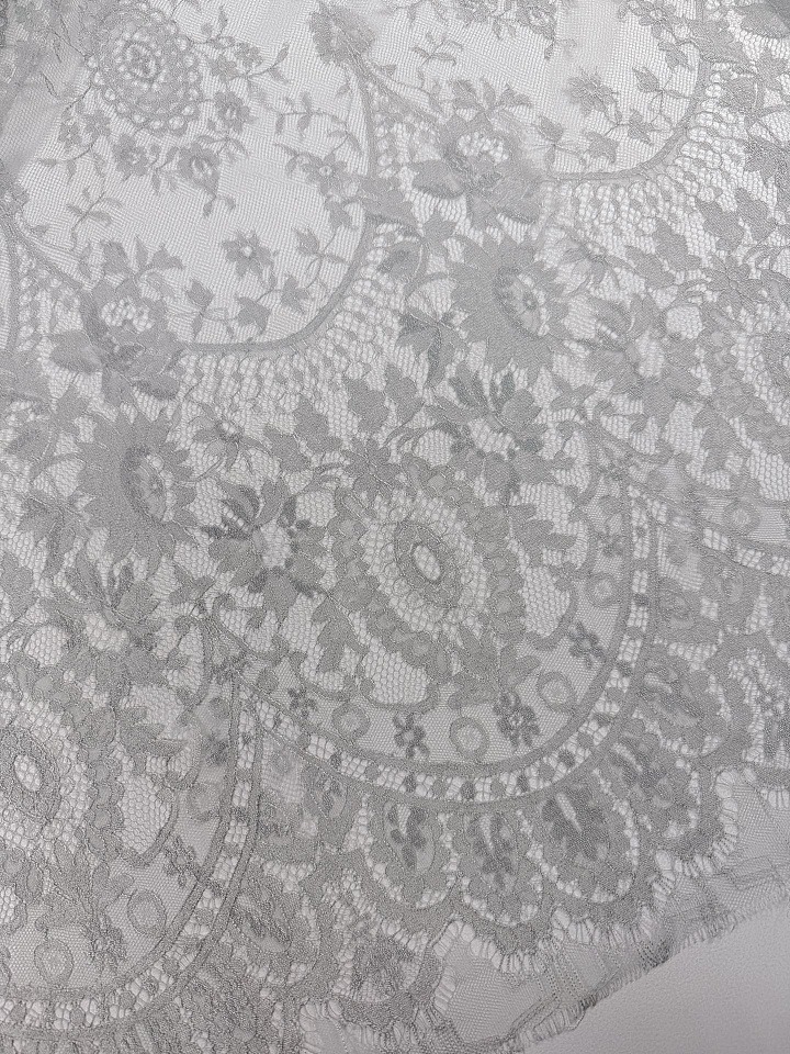 Кружевное полотно шантильи (о) светло-серое - цена 9 500 ₽ У нас самые доступные цены на в Москве, доставка по всей России - интернет магазин тканей Тессутидея. Артикул товара для заказа - 03-7569. Страна производства ткани – Италия. Ширина этого материала - 95. Состав - Хлопок 51% полиамид 49%. Наличие остатков на складе - 21.5 м
