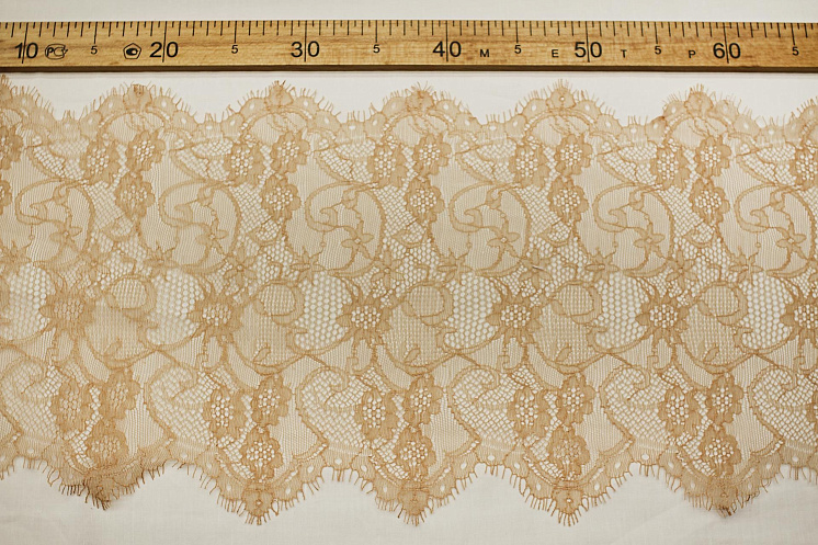 Кружево бежевое ш-32см - цена 4 500 ₽ У нас самые доступные цены на Кружевные ткани в Москве, доставка по всей России - интернет магазин тканей Тессутидея. Артикул товара для заказа - 03-7372. Страна производства ткани – Италия. Ширина этого материала - . Состав - Хлопок 51% полиамид 49%. Наличие остатков на складе - 15 м