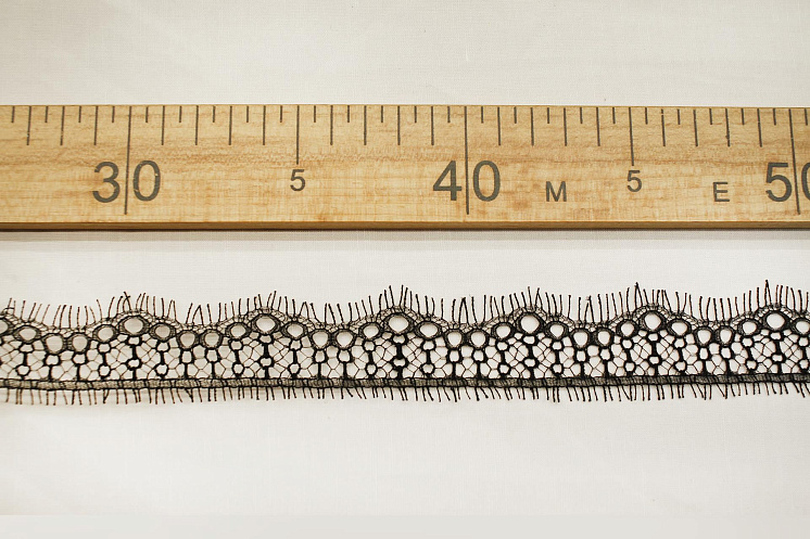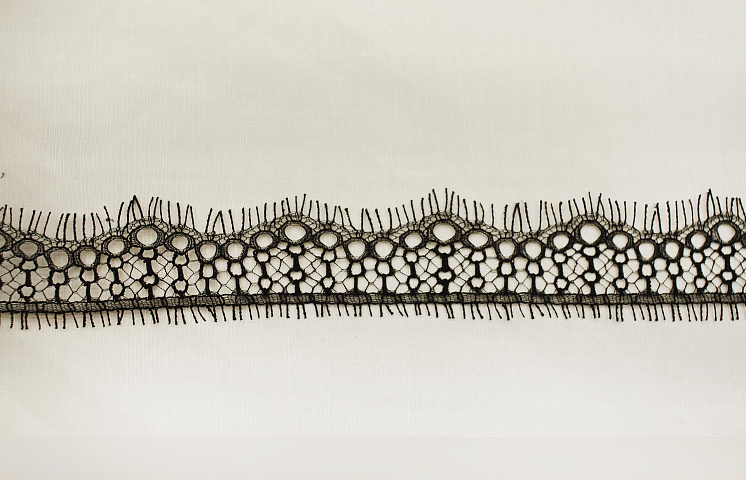 Кружево черное ш-3,5см - цена 550 ₽ У нас самые доступные цены на Кружевные ткани в Москве, доставка по всей России - интернет магазин тканей Тессутидея. Артикул товара для заказа - 03-7349. Страна производства ткани – Италия. Ширина этого материала - . Состав - Хлопок 51% полиамид 49%. Наличие остатков на складе - 13.6 м