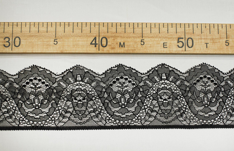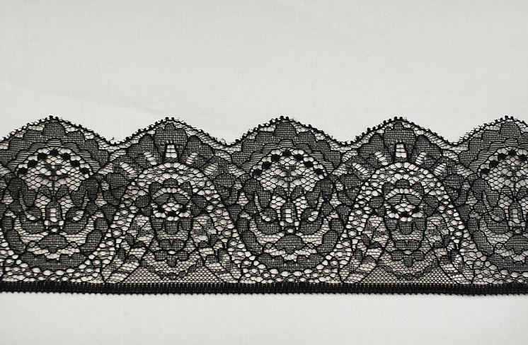 Кружево черное ш-7,5см - цена 600 ₽ У нас самые доступные цены на Кружевные ткани в Москве, доставка по всей России - интернет магазин тканей Тессутидея. Артикул товара для заказа - 03-7342. Страна производства ткани – Италия. Ширина этого материала - . Состав - Полиамид 100%. Наличие остатков на складе - 23 м
