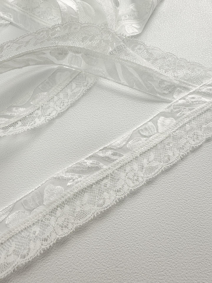 Кружево комбинированное (о) белое - цена 300 ₽ У нас самые доступные цены на Вискоза в Москве, доставка по всей России - интернет магазин тканей Тессутидея. Артикул товара для заказа - 03-5282. Страна производства ткани – Италия. Ширина этого материала - 3. Состав - Хлопок 55% вискоза 45%. Наличие остатков на складе - 45.3 м