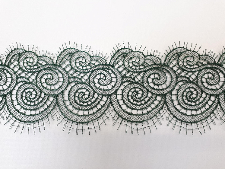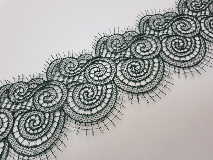 Кружево макраме (о) темно-зеленое ш-9см - цена 950 ₽ У нас самые доступные цены на Синтетические волокна в Москве, доставка по всей России - интернет магазин тканей Тессутидея. Артикул товара для заказа - 03-5567. Страна производства ткани – Италия. Ширина этого материала - 9. Состав - Полиамид 100%. Наличие остатков на складе - 1.4 м