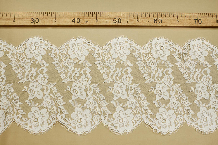 Кружево молочное ш-24см - цена 3 200 ₽ У нас самые доступные цены на Кружевные ткани в Москве, доставка по всей России - интернет магазин тканей Тессутидея. Артикул товара для заказа - 03-7356. Страна производства ткани – Италия. Ширина этого материала - . Состав - Хлопок 51% полиамид 49%. Наличие остатков на складе - 9.5 м
