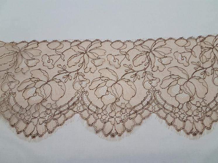 Кружево (н) бежево-коричневое ш-22см - цена 1 400 ₽ У нас самые доступные цены на Синтетические волокна в Москве, доставка по всей России - интернет магазин тканей Тессутидея. Артикул товара для заказа - 03-4433. Страна производства ткани – Италия. Ширина этого материала - 22. Состав - Нейлон 50% полиамид 50%. Наличие остатков на складе - 13.1 м