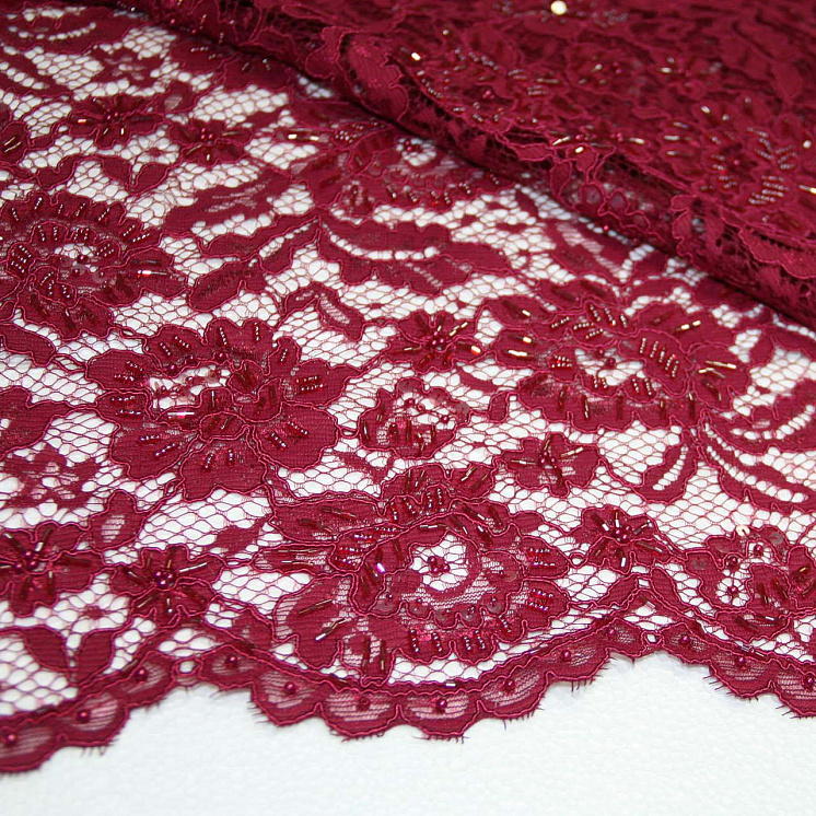 Кружево на сетке расшитое стеклярусом и паетками (о) марсала ш-130см - цена 16 500 ₽ У нас самые доступные цены на Кружевные ткани в Москве, доставка по всей России - интернет магазин тканей Тессутидея. Артикул товара для заказа - 03-3305. Страна производства ткани – Италия. Ширина этого материала - 130. Состав - Вискоза 15% полиамид 50% полиэстер 35%. Наличие остатков на складе - 2.3 м