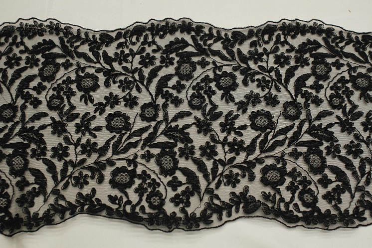 Кружево (о) черное ш-26см - цена 2 800 ₽ У нас самые доступные цены на Кружевные ткани в Москве, доставка по всей России - интернет магазин тканей Тессутидея. Артикул товара для заказа - 03-7408. Страна производства ткани – Италия. Ширина этого материала - 26. Состав - Вискоза 40% ацетат 60%. Наличие остатков на складе - 8.2 м