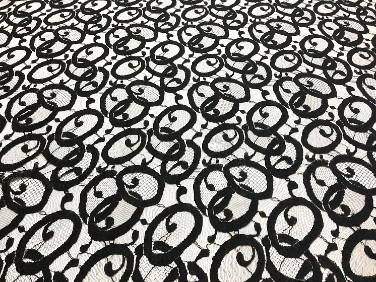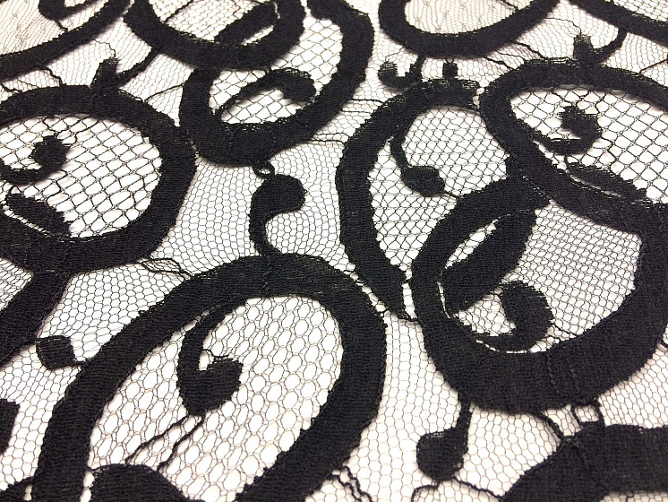 Кружево (о) черное Solstiss - цена 4 800 ₽ У нас самые доступные цены на Кружевные ткани в Москве, доставка по всей России - интернет магазин тканей Тессутидея. Артикул товара для заказа - 03-5048. Страна производства ткани – Италия. Ширина этого материала - 90. Состав - Вискоза 84% полиамид 16%. Наличие остатков на складе - 1.8 м