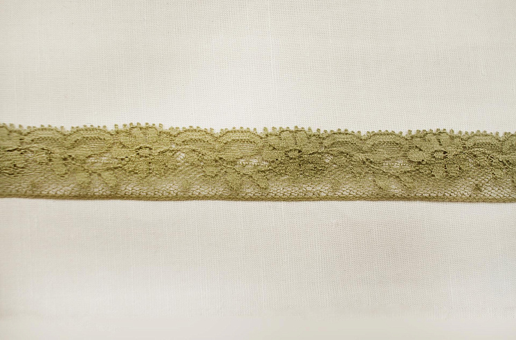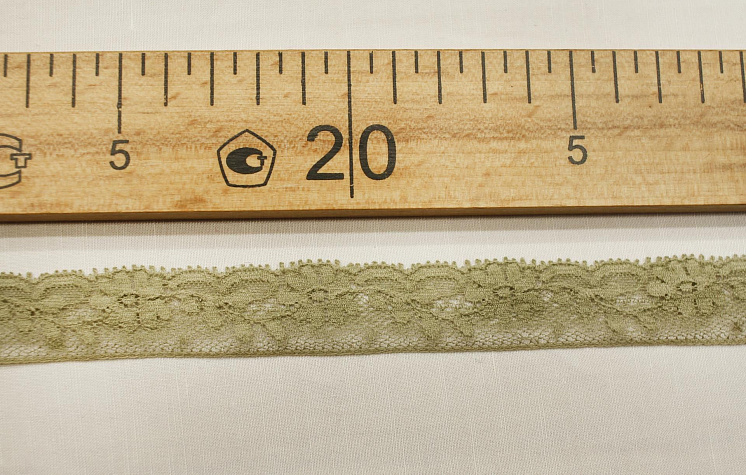 Кружево оливковое ш-2см - цена 250 ₽ У нас самые доступные цены на Кружевные ткани в Москве, доставка по всей России - интернет магазин тканей Тессутидея. Артикул товара для заказа - 01-7916. Страна производства ткани – Италия. Ширина этого материала - . Состав - Хлопок 100%. Наличие остатков на складе - 20 м