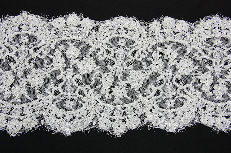 Кружево расшитое стеклярусом (о) белое ш-24см Solstiss Арт. 03-3843