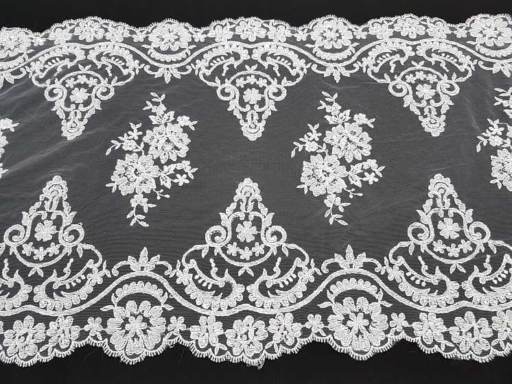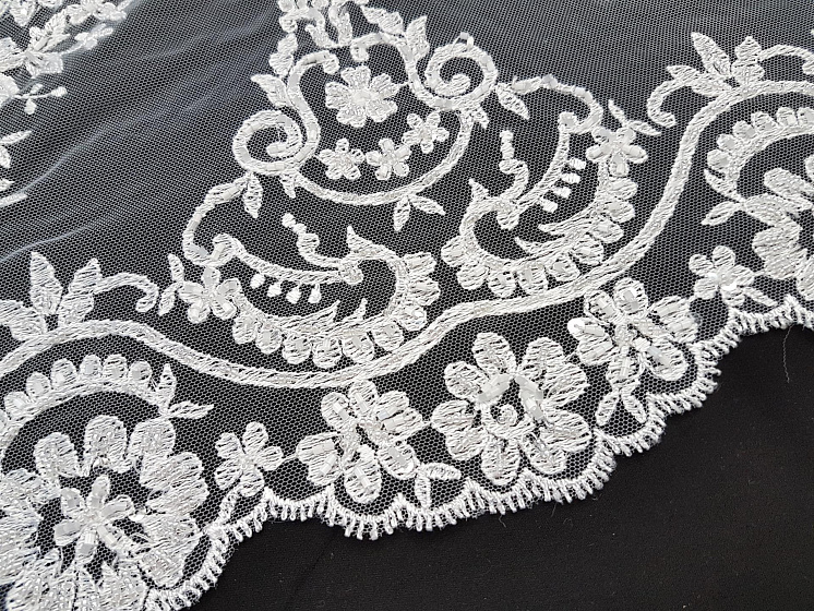 Кружево расшитое стеклярусом (о) белое - цена 3 500 ₽ У нас самые доступные цены на Кружевные ткани в Москве, доставка по всей России - интернет магазин тканей Тессутидея. Артикул товара для заказа - 03-4880. Страна производства ткани – Италия. Ширина этого материала - 40. Состав - Вискоза 40% полиамид 50% полиэстер 10%. Наличие остатков на складе - 2.2 м