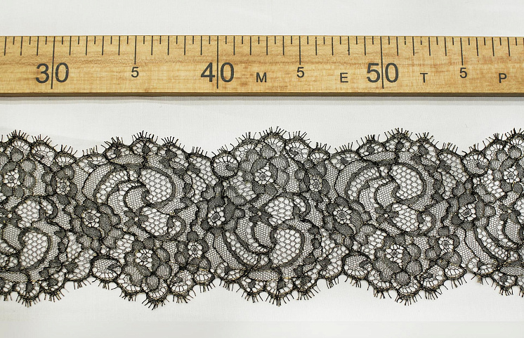 Кружево с люрексом черно-золотое ш-10,5см - цена 2 100 ₽ У нас самые доступные цены на Кружевные ткани в Москве, доставка по всей России - интернет магазин тканей Тессутидея. Артикул товара для заказа - 03-7351. Страна производства ткани – Италия. Ширина этого материала - . Состав - Хлопок 51% полиамид 49%. Наличие остатков на складе - 14.6 м
