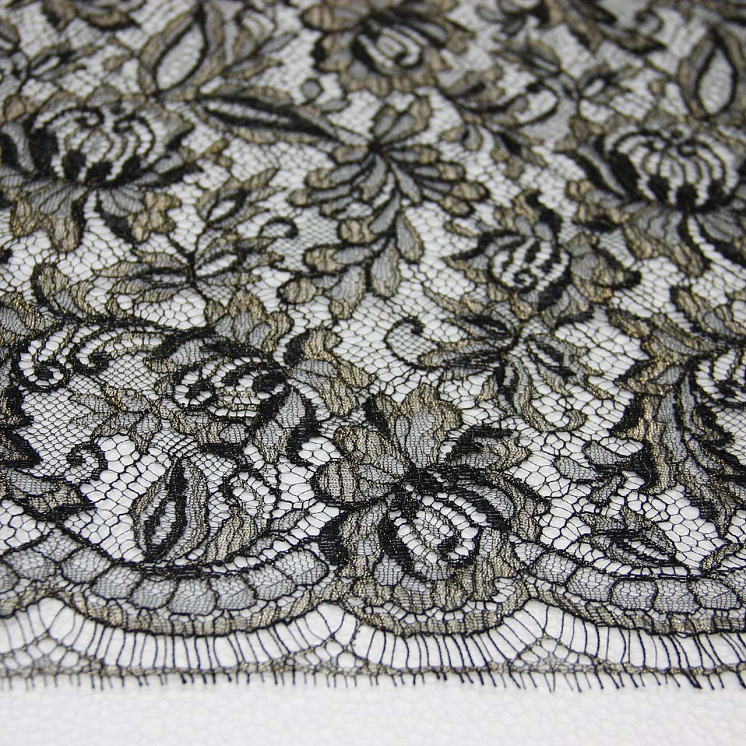 Кружево с люрексом (н) черно-золотое ш-90см Solstiss - цена 4 500 ₽ У нас самые доступные цены на Кружевные ткани в Москве, доставка по всей России - интернет магазин тканей Тессутидея. Артикул товара для заказа - 03-3262. Страна производства ткани – Италия. Ширина этого материала - 90. Состав - Полиамид 56% люрекс 44%. Наличие остатков на складе - 1.75 м