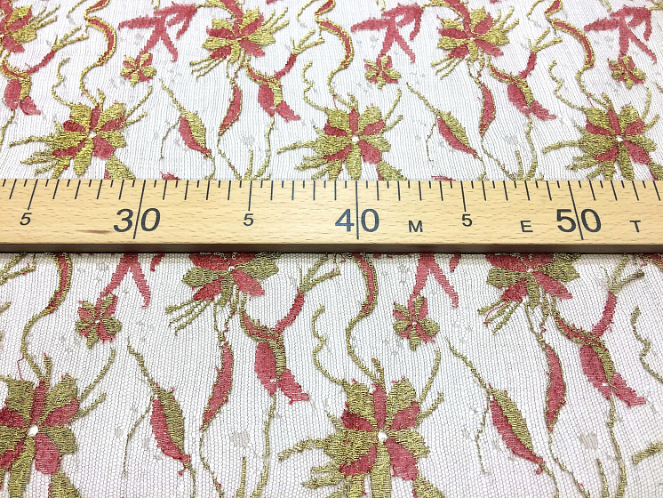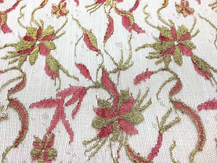 Кружево с люрексом (н) красно-коричнево-золотое Solstiss - цена 5 200 ₽ У нас самые доступные цены на Кружевные ткани в Москве, доставка по всей России - интернет магазин тканей Тессутидея. Артикул товара для заказа - 03-5067. Страна производства ткани – Италия. Ширина этого материала - 95. Состав - Вискоза 20% люрекс 20% полиамид 60%. Наличие остатков на складе - 4.8 м