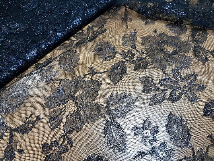 Кружево с люрексом (о) черное - цена 3 800 ₽ У нас самые доступные цены на Кружевные ткани в Москве, доставка по всей России - интернет магазин тканей Тессутидея. Артикул товара для заказа - 03-3992. Страна производства ткани – Италия. Ширина этого материала - 100. Состав - Полиамид 85% люрекс 15%. Наличие остатков на складе - 3.3 м