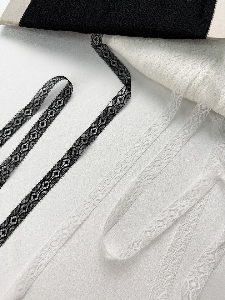 Кружево ш-1,5см белое, черное - цена 100 ₽ У нас самые доступные цены на в Москве, доставка по всей России - интернет магазин тканей Тессутидея. Артикул товара для заказа - 03-1430. Страна производства ткани – Италия. Ширина этого материала - 1.5. Состав - Нейлон 100%. Наличие остатков на складе - 204.55 м