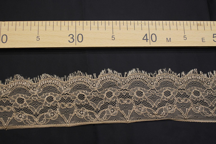 Кружево ш-7,5см бежевое - цена 450 ₽ У нас самые доступные цены на Вискоза в Москве, доставка по всей России - интернет магазин тканей Тессутидея. Артикул товара для заказа - F-6303. Страна производства ткани – Италия. Ширина этого материала - 7,5. Состав - Вискоза 35% полиамид 65%. Наличие остатков на складе - 31 м