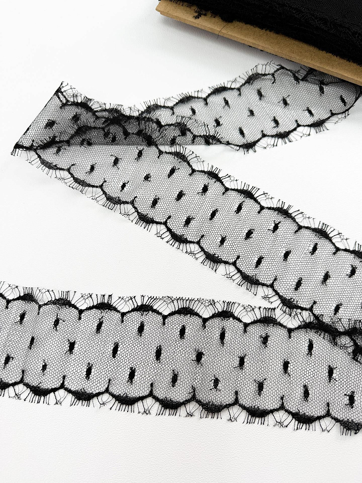 Кружево ш-8см черное - цена 600 ₽ У нас самые доступные цены на Кружевные ткани в Москве, доставка по всей России - интернет магазин тканей Тессутидея. Артикул товара для заказа - 03-7454. Страна производства ткани – Италия. Ширина этого материала - 8. Состав - Вискоза 20% полиамид 80%. Наличие остатков на складе - 21.3 м