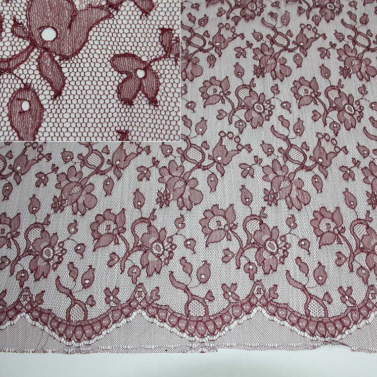 Кружево Solstiss (о) вишневое ш-95см - цена 3 200 ₽ У нас самые доступные цены на в Москве, доставка по всей России - интернет магазин тканей Тессутидея. Артикул товара для заказа - 03-2343. Страна производства ткани – Италия. Ширина этого материала - 95. Состав - Полиамид 100%. Наличие остатков на складе - 1.6 м