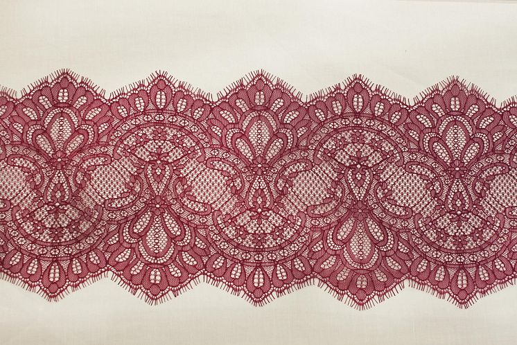 Кружево темная фуксия ш-21см - цена 2 800 ₽ У нас самые доступные цены на Кружевные ткани в Москве, доставка по всей России - интернет магазин тканей Тессутидея. Артикул товара для заказа - 03-7362. Страна производства ткани – Италия. Ширина этого материала - . Состав - Хлопок 51% полиамид 49%. Наличие остатков на складе - 14.5 м
