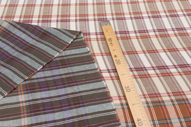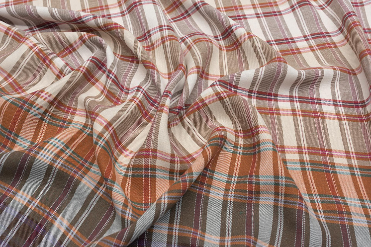 Лен костюмный (н) бело-коричнево-зеленая клетка Арт. 16-0785