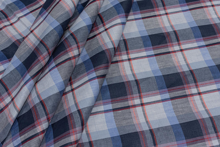 Лен костюмный (н) сине-красно-голубая клетка Арт. 16-0761